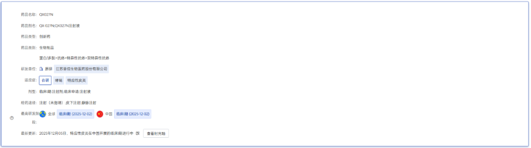 值得注意的是,QX027N在今年11月获得国家药监局临床试验默示许可,12月12日才完成I期首例受试者入组,拟用于治疗哮喘及特应性皮炎。Windward Bio作为专注于免疫疾病的临床阶段公司,其管线中已有同类项目WIN027,此次合作形成战略协同。