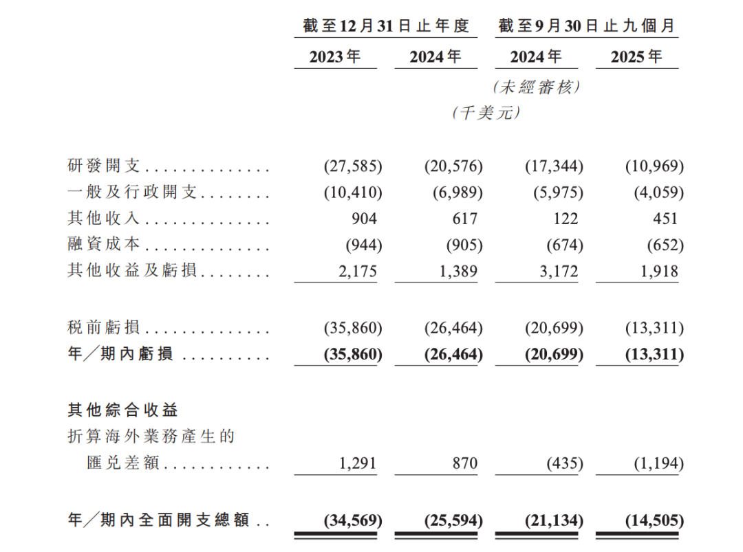 招股书显示,公司税前亏损从2023年的约3586万美元收窄至2024年的约2646万美元,2025年前九个月进一步亏损约1331万美元。亏损规模的持续收窄,一定程度上反映出公司成本控制与资源优化的成效。