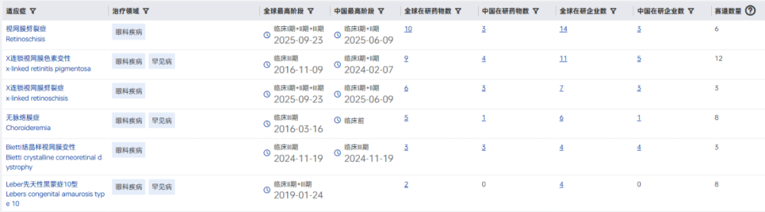 从基因治疗药物的靶向治疗领域来看,眼科疾病是美国及中国临床开发阶段基因治疗药物中最主要的靶向领域。药智数据显示,中美目前各有超30项眼科疾病基因治疗药物处于临床开发阶段。