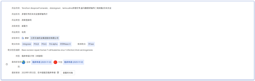 截至获批公告日,ADC205片已完成药学研究,工艺稳定,质量可控。其核心成分之一——多替拉韦钠的单药制剂已递交ANDA申请并获受理,相关原料药也已于2025年10月获得上市批准。这表明艾迪药业在该药物链上已实现从原料药到制剂的全面布局,为后续商业化生产奠定了坚实基础。