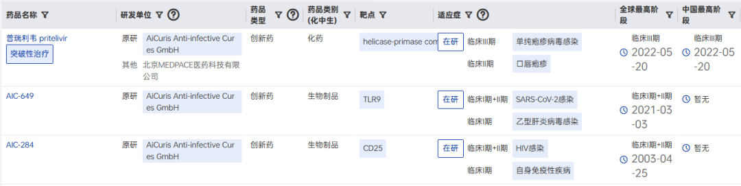 Aicuris部分管线进展
