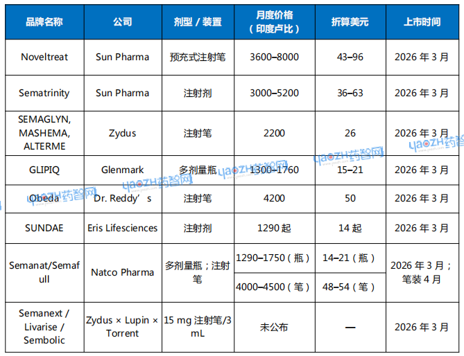 印度此次竞争的第二个显著特征是参与企业数量之多,以及竞争层次的高度复杂化。包括Sun Pharma、Dr.Reddy’s、Glenmark、Zydus、Lupin、Biocon、Mankind等在内的几乎所有大型印度制药企业都加入了竞争。至少有40家以上企业,超过50个品牌将在短期内上市,形成全球最密集的GLP-1仿制药战场。
