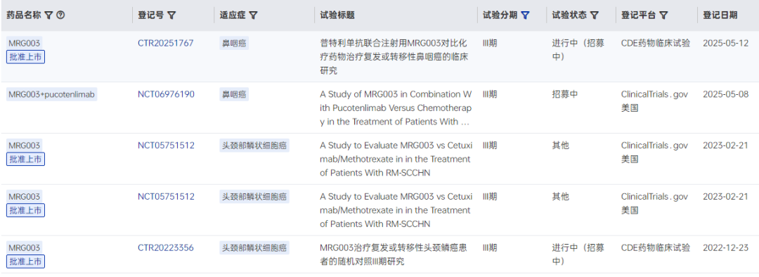 MRG003已登记的Ⅲ期临床试验